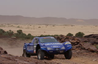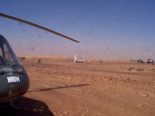 パリダカは主催者の調査隊が毎年夏にコース予定ルートを走り、ロードブックを作りながら、安全性や輸送の便宜などを考慮してキャンプ地を決めます。現地の人々とパリダカの一隊が通過する了解を取り付けるのも重要な仕事の一つになっています。ところが、その調査隊が車や所持品の多くをを奪われ、丸腰にされてアガデス(ニジェール)へ送り届けられました。1996年夏のことでした。