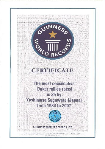 ダカール・ラリー(通称パリダカ)に25年間、連続出場してきた菅原義正さん(66歳)の、パリ〜ダカール・ラリー最多出場(25回)が、このほどギネス世界記録として認定された。