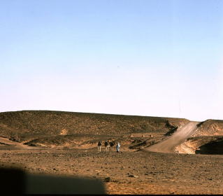 写真はテネレ砂漠でラクダのキャラバンにであったところです。広い砂漠でラクダは隊商の首領の乗ったラクダを中心にして、左右に開きます。渡り鳥が隊を組んでいるのと似ています。一直線に歩くのは狭い隘路や岩だらけのところです。