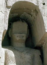 トップ右はバーミヤンの石仏が破壊される前の写真です。顔の上側はイスラムの侵入の際に削られたそうです。右は石仏前。トヨタ・カローラで走りました。左に立っているのは若き日のババです。