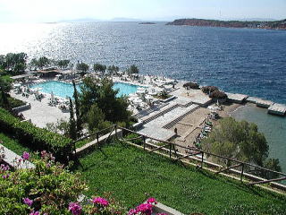 そのためかどうか分かりませんが、90年代には高級ホテルの数は少なかったアテネ近郊のビーチに、とんでもなく高いホテルが出来ています。南西のスーニオン方面に20`ほど走ると、そういうホテルがあります。海辺までプールがあり、それに続くプライベート・ビーチです。