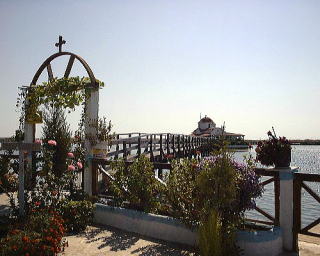 湖の中の小さな島にに教会があり、橋が架かっていました。小さいけれど可愛らしい教会でした。