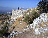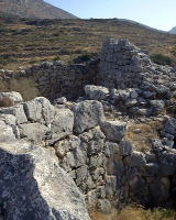 面白いのは裏側です。正門に比べるとだいぶ見劣りはしますが、大きな石で固めています。斜めに石段がある深い井戸もあります。以前、入ってみたときには水がありました。05年に行ったときには立ち入り出来ませんでした。斜面の北側には石垣が積まれ正門の横に回り込む道があります。このあたりは山羊が入り込んで遺跡を独占していました。