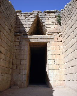 英国人のシューリマンがギリシャ神話を元に、探し回った末、ミケーネの存在を明らかにしました。門を入ってすぐの右側に、黄金のマスクをつけた王の墓を見つけ出す成果を上げました。