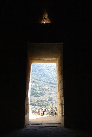 井戸の中にも入りました。懐中電灯は持っていたのですが、外の太陽が強烈なので、しばらくは役にたちません。ティリンスの城にあったトンネルと同じように、上の尖ったアーチ型に石が積まれています。ミケーネの方がずっと古い遺跡ですから、きっとティリンスは真似をしたのでしょう。