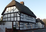 ●シェークスピアの故郷 ストラトフォード・アポン・エイヴォン(Stratford Upon Avon) 文豪シェークスピアの生誕地として知られる町でイギリスの代表的な観光地である。 オックスフォードからほぼ北へ45マイル(約70km)M40号線の高速道路をインター11のバンベリー(Banbury)で出て県道の狭い田舎道を走る。緑の牧草地に羊の群をみながら15マイル(約20km)も行ったところに石造りに茅葺きの屋根の古い民家に出会った。村に入ると古い小さな教会を中心に茅葺き屋根の民家が並んでいた。 そのはずであった。このあたりより南へ下る一帯は、中世の庶民の文化遺跡がそのまま残る村々の点在する、もっともイングランドらしい田舎の風景の続く街道なのである。 このコースについては次回に回して先を急ぐ。