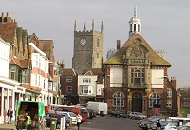 村の中心部には1665年に造られたというマーケット・ハウスがある。1700年代に改修されているが約350年前に建てられたものだ。 正面の時計台は1887年に造られたものだと、マーケットの中の案内板に書かれていた。 |