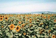峠を越えると、コルドバ(写真上右)までの道沿いには夏はヒマワリ畑がどこまでも続く。黄色に染まった大地と紺碧の空、光輝く太陽、スペインの魅力を惜しげもなく見せてくれる。