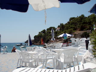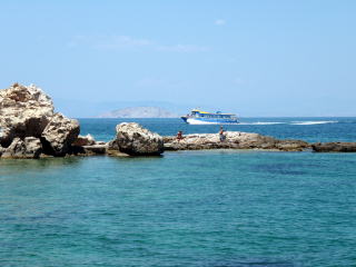 島は港の西側に旧市街とビーチがあり、その先数`で道は途絶えます。港の東は別荘地と島では高級なレストラン、岩礁へ続くテラスを持つお茶やがあります。子供連れは西のビーチ、大人だけのグループや別荘に来る人は東です。