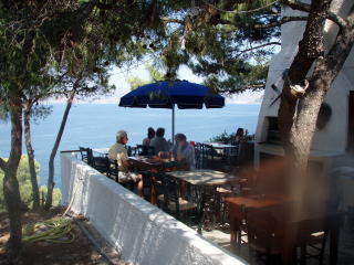 飲んだり、騒いだりする施設はありません。島へ行きビーチで遊ばない人は、海を見下ろす崖の上のカフェーで一杯やりながらまどろみます。