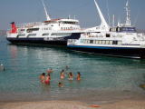 泳ぐのは港でもどこでも自由です。フェリーが来ると避け、停泊中は水に入ります。海は澄んでいて港とは思えないほどです。海が比較的静かなので、防波堤もろくにありません。