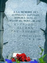 レビュファの墓所は並木を真っ直ぐ行き、十字架のあるところから右の通路を通り、そ新墓地へ入り、右から左へと緩い坂の下を巡り上りはじめる角にありました。「日本人の墓もその先にあるよ」と墓守は親切に教えてくれました。シャモニーの日本人会が作ったもので、モンブラン山群などで遭難死した人たちを弔うののでした。シャモニーのガイドたちのレリーフや墓も沢山ありました。