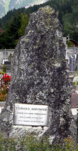 メールドグラスへの登山電車の駅の山側、広場の先に大きな墓地があり、正面の門を潜るとすぐ左に、自然石をちょっと刻み、マッターホルンの形に似せた石碑にウィンパーのレリーフがはめ込まれ、前には花が植えられていた。世界に名を知られたのはマッターホルンの初登頂だが、ウィンパーは晩年をシャモニーで過ごした。ツェルマットにあるのは同行して遭難した仲間の墓でした。