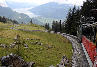 アルプスの3つの峠を巡った後、ローヌ川の北側にある山上の町、レウケルバッドとクランスモンタナに寄りました。レウケルバッドはまだ割と新しいリゾート地でした。岩山の上までケーブルで上ったら、遙かマッターホルンまで見渡せました。