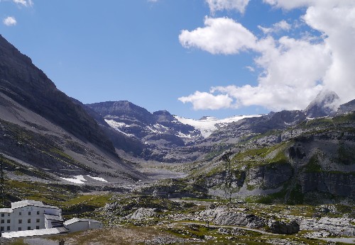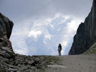 モンブラントンネルを抜けて後ろを振り仰ぐと、シャモニーもすぐ山がありますが、モンブラントンネルを越えたイタリア側は、すぐ近くまで氷河が迫り、山も荒々しい感じでした。