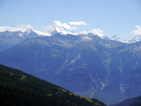 ツェルマット近くのティシからようやく腰を上げ、北西のローヌ川やその周辺の氷河、著名な峠