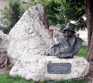 コルチナ・ダンペッツォの街の中に小公園がある。そこに山をに見立てた花崗岩があり、ザイルを肩に巻いた男の胸像がある。イタリアの山岳関係者が誇りとする登山家・山岳ガイドだったアンジェロ・ディボナ(1879年~1956年)だ。ドロミテの偉大な開拓者はコルチナ・ダンペッツォに生まれ、冬季オリンピックの開催された年に亡くなっている。