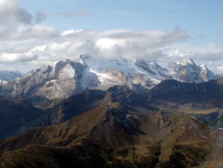第一次世界大戦ではドロミテの山群も戦場になり、イタリア、オーストリア両国は、ドロミテ制覇のために山岳兵の部隊を編成していた。重装備で急峻な岩山を移動するのはかなり山登りに通じていなければ無理だ。ロープウェイの山頂駅から、峠まで歩いて下れるが、細い踏み跡や岩をへつる場所も多く、1つ間違うとお終いだ。穂高を一回りする暗いの力量がないと、歩いて下るのはお勧めは出来ない。