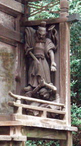 一体かと思ったら何体もあって、いわゆる道しるべの役を担っている。道案内なら猿田彦だが、残念、猿田彦はまだ表舞台には出てこないところで、力量発揮の時を待っているのだ。しかし高千穂ではわかりやすかった。上の写真がそれで、天の岩戸をこじ開けるシーンとは異なるが、力持ちなのは一目瞭然。これが天の岩戸神社そのほか有名どころへの標識を兼ねている。