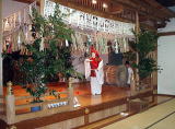 左・高千穂神社 中・右 夜には舞台で神々が舞う