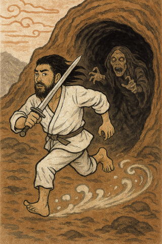 「ま、ま、待ってくれ」といったかどうか。伊邪那岐は黄泉比良坂目指しての”大脱走”となった。