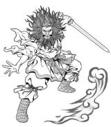 巨大な“怪獣”は八つの頭を持つ蛇。暴れ者のスサノヲにとっても初めての敵。クシナダヒメの姿を櫛に変えて自らの頭髪に差し込んで、具体的な策をアシナヅチ、テナヅチ夫婦に授けた。