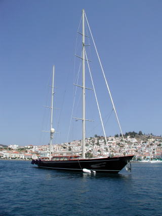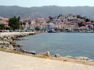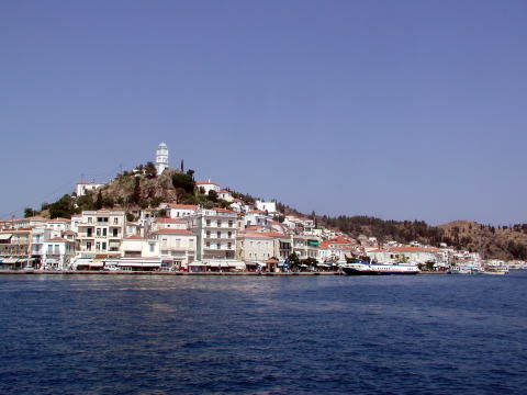 ポロス島は船から見るといかにもギリシャの島という感じを受けます。教会が港の後ろ小高い岩山の上に立っています。