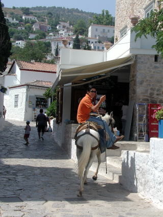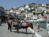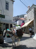 イドラ島は馬とロバが陸上交通の主役です。船が着くと港には馬が並んで待っています。暑い中を文句も言わず、可愛いものです。