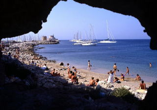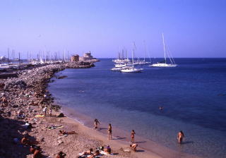 ロードス島は船だとピレウスから遠いので、ヨーロッパの都市から観光客はチャーター便で飛んできます。団体なので経費も安いし、宿も初めから決まっているので気楽には気楽でしょう。ジジ・ババは例によって“アポなし旅行”ですから、出たとこ勝負です。たいがい値段も手頃な宿が見つかるものです。旅は気楽にするのがいいのです。