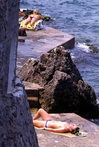 ビーチは奔放にリゾートを楽しむ人々が一杯です。北から太陽を満喫するためにやってくるのです。以前はジジ・ババもトップレスの人がいると目を背ける傾向がありました。なんだか見るのが悪いように思ったのです。