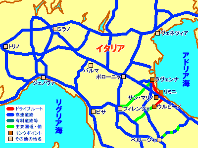 ラヴェンナから国道16号線を南下。リミニ(Rimini)へ近づいたことを知らせる標識から車の距離計をみながら慎重に走る。アドリア海まで約500mというのに、広い河口もなく、大きな橋が架かっているわけではない。交通量の多い国道ではのろのろ運転も停車もできないので見過ごさないように注意しながらのドライブだ。行きすぎは禁物なので、少し手前かと思えるインターチェンジを出て、ローカル・ロードを南下する。国道沿いの橋を見つけ“Rubicone”の標示を見つけたときは思わず「あった!」と声をあげていた。