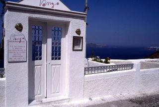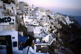 急な崖に建ち並ぶ白い壁の家々は、サントリーニ島の代表的な景色です。ホテルもレストランも一般の家もここでは同居しています。