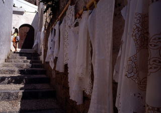この島に特別な産業はありません。観光が全てです。売られている品物はギリシャではありふれたものですが、古い石畳の路地で店をのぞいて歩くのは、何となく楽しいものです。