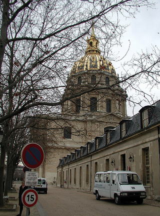 アンバリッド(右上)がナポレオンの霊廟です。金色のドームの真下に大理石の棺が安置されています。台座へは階段を降り半地下になっています。廟にはいると大理石の手すりから覗く形になります。