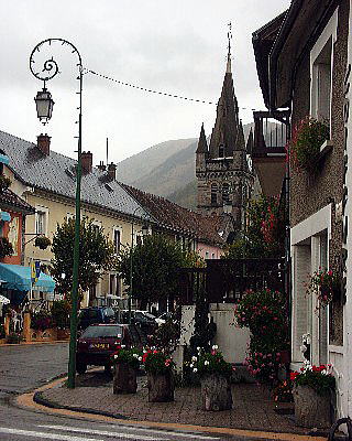 美しい村や町が時々現れます。街道の大部分は山や丘陵地帯です。右の町は食前酒で有名なところで、酒屋さんにはずらりと地物が並んでいました。