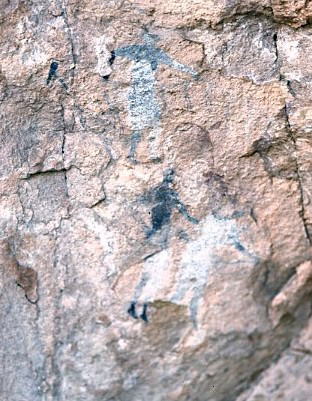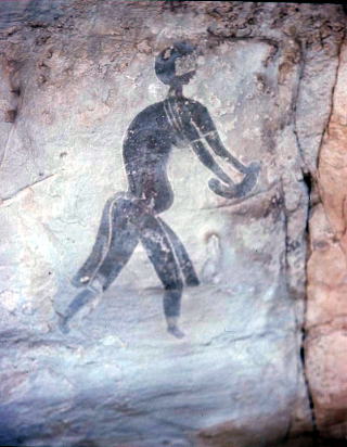 腹がポッコリと出ているのは、別に食いすぎという訳ではないでしょう。絵の様子から見て女性のようにも見えます。ズボンにもラインが入り、膝下までの長さです。お洒落なサハラの人たちを、彷彿とさせる壁画です。