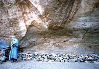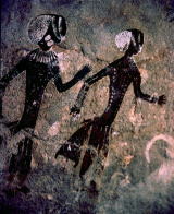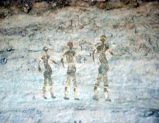 5000年ほど前の絵でしょうが、この頃はもうサハラも熱くなっていたのでしょうか。顔だけ出して頭部は布で覆っています。今のトゥアレグやベドウィンの人々に伝わる被り物です。