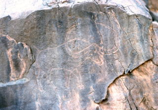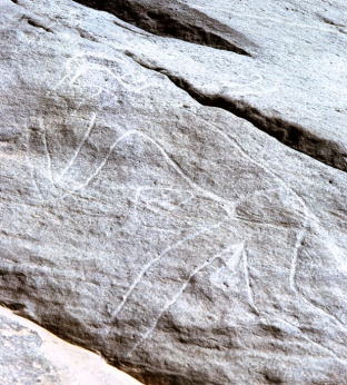 水牛の線刻画です。サハラにまだ湿地が広がっていた時代。おそらく8000年ほど前のものでしょう。