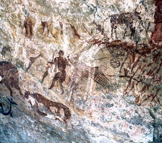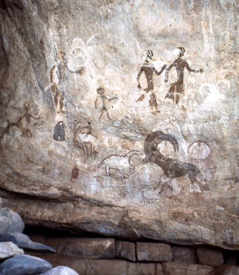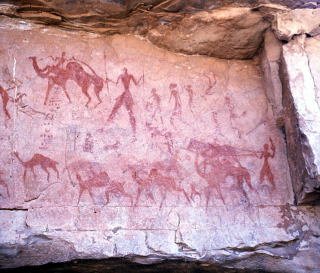 サハラの芸術家たちは、様々な絵を描いています。狩猟、農耕、牛、ラクダなどが時代に沿って現れてきます。