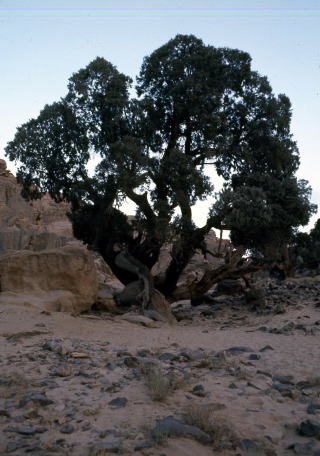 | 山の上に巨大なイトスギがありました。3000年杉とか言っていましたが、緑だった時代の名残でしょう。山全体で11本あると聞きました。 |