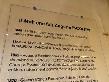 エスコフィエは青年時代パリで色々なレストランで経験を積みながらパリのホテル・リッツ、ロンドンのホテル・サボイの料理長を務さらにモンテカルロの超高級ホテルのシェフとして世界中に名を轟かせた。世界中のトップシェフは彼の5000もあるレシピが記載されている教科書「ル・ギード・キュリネール」le Guido Culinaireをベースにしているとの事。観光客をターゲットにしたコートダジュールのレストランが多い中、特別な星付きレストランや料理作りがどれほど価値あるものかが伝わってきます。ここコートダジュールのニースにはMの星付きレストランは5店、カンヌは1店。モナコはさすがに多く7店もあります。