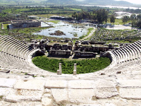 エーゲ海岸のミレトはミレトスと呼ばれギリシャ・ローマ時代にイオニア文化の中心として栄えたところです。昔の海は前方の林のすぐ後ろまで迫っていたのです。