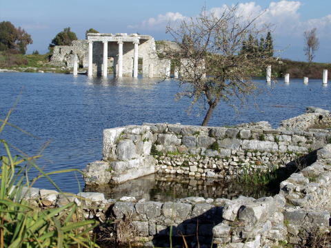 ミレトの市場跡。雨期の直後は広場が水に浸かり、幻想的な遺跡になる。