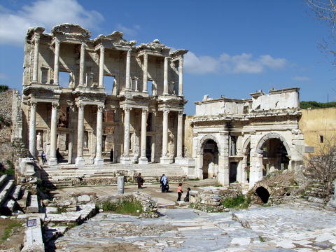 左の写真はエフェスの図書館跡です。ざっと10万冊の蔵書があったと伝えられています。